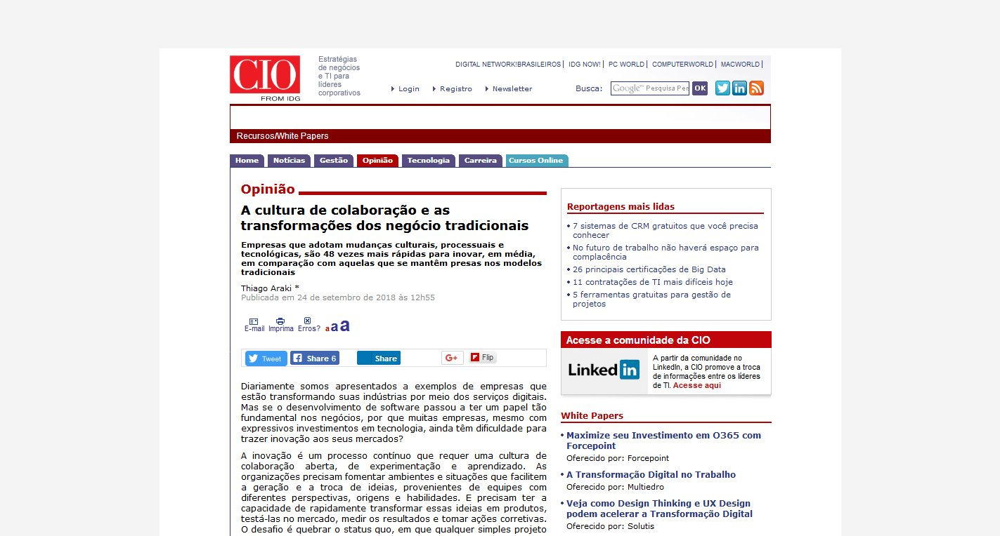 Link: http://cio.com.br/opiniao/2018/09/24/a-cultura-de-colaboracao-e-as-transformacoes-dos-negocio-tradicionais/