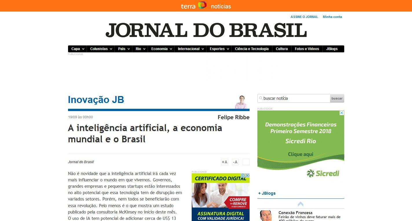 Link: http://www.jb.com.br/colunistas/inovacao_jb/2018/09/7581-a-inteligencia-artificial-a-economia-mundial-e-o-brasil.html
