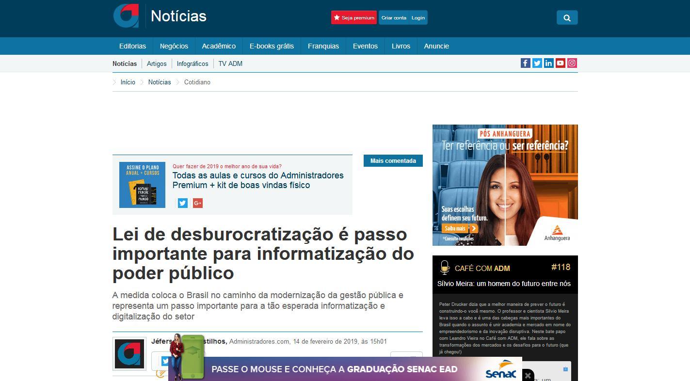 Link: http://www.administradores.com.br/noticias/cotidiano/lei-de-desburocratizacao-e-passo-importante-para-informatizacao-do-poder-publico/127820/