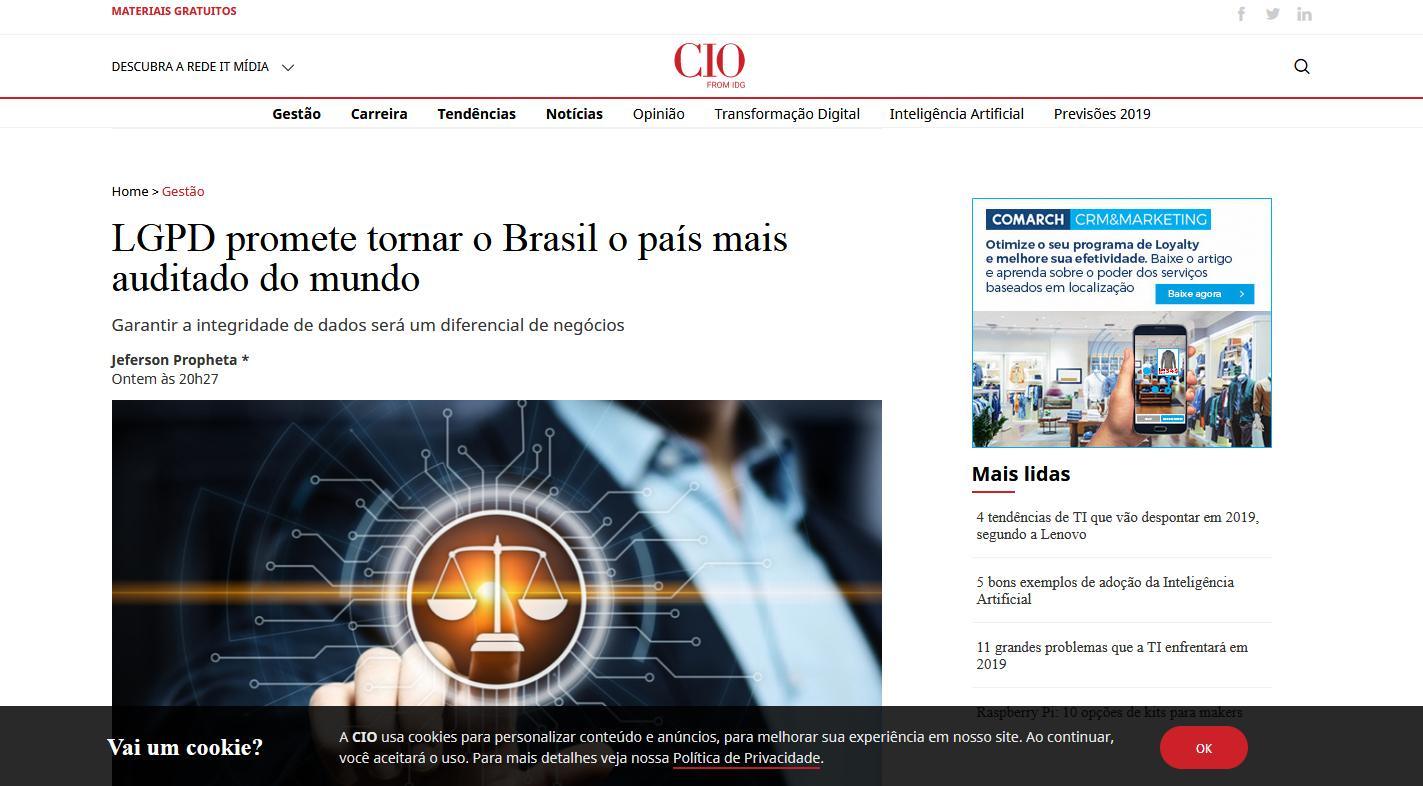 Link: https://cio.com.br/lgpd-promete-tornar-o-brasil-o-pais-mais-auditado-do-mundo/
