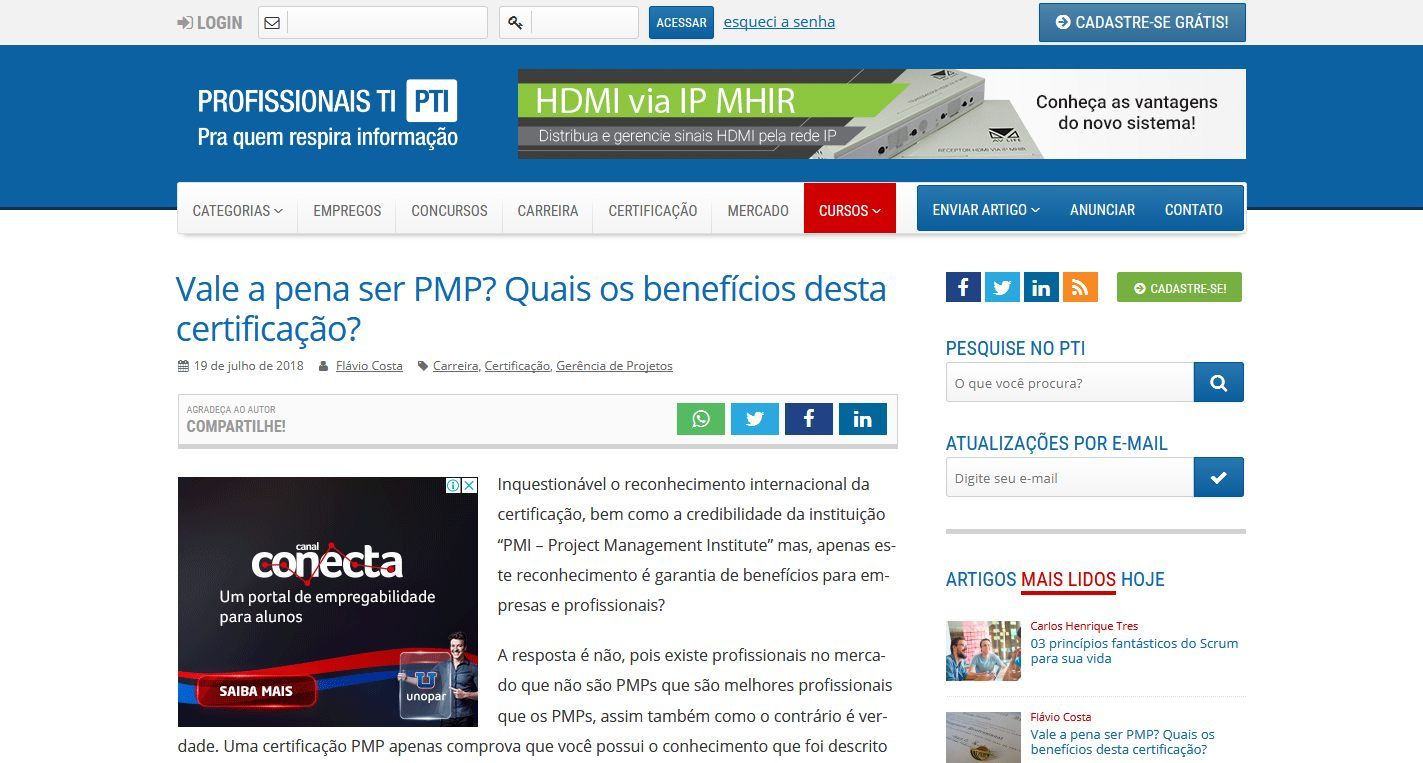 Link: https://www.profissionaisti.com.br/2018/07/vale-a-pena-ser-pmp-quais-os-beneficios-desta-certificacao/